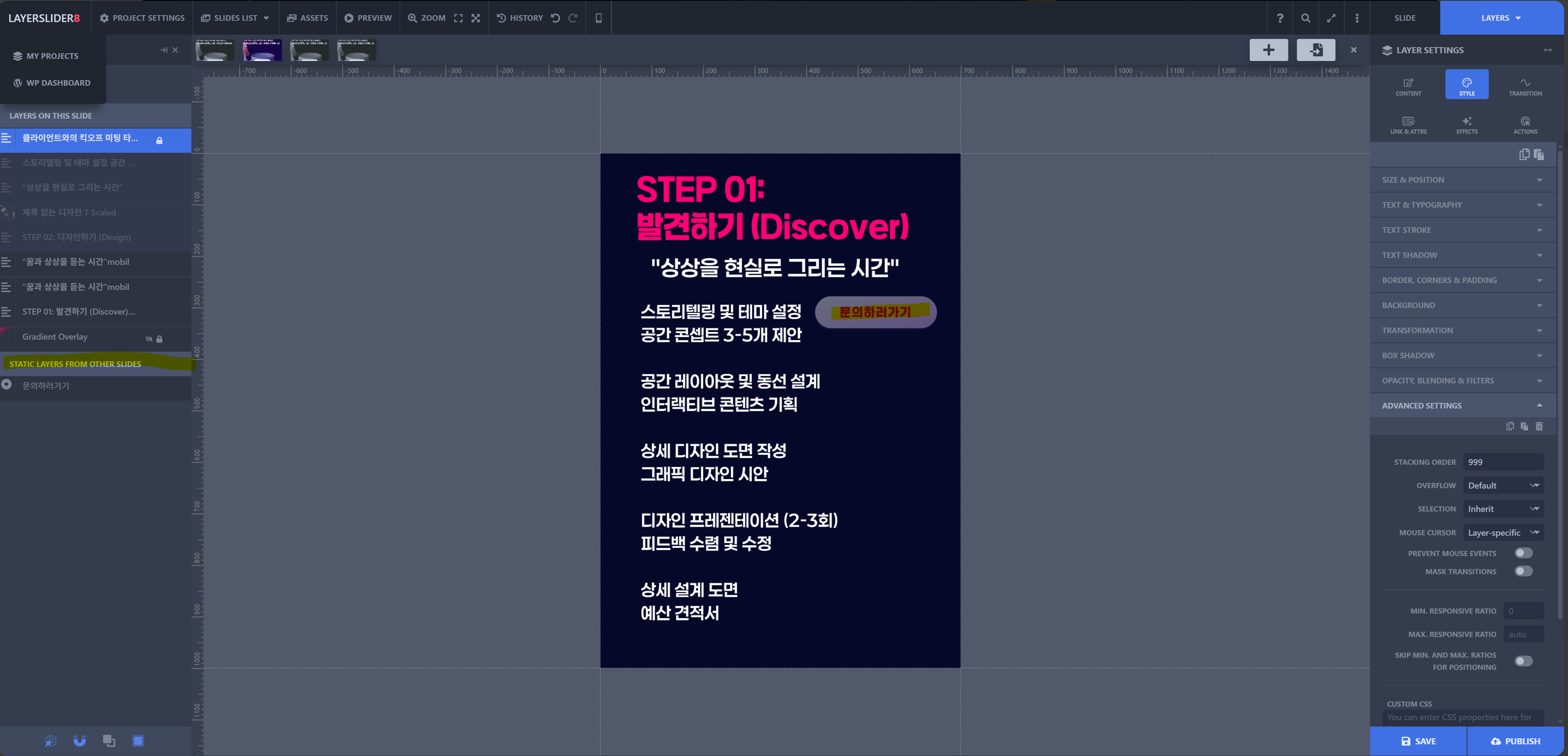 여러 슬라이더에서 정적 레이어를 시야에서 제거하는 방법을 알고 싶습니다. 고정 레이어를 끄고 싶습니다