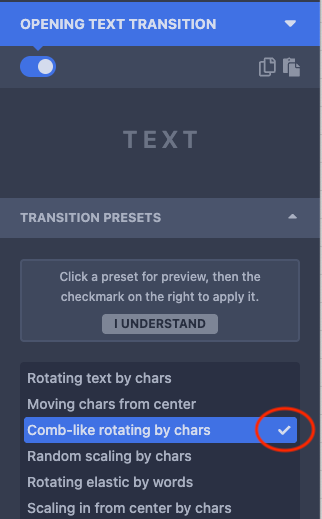 When you use a transition preset, it does not activate automatically just by selecting it – you must explicitly apply it.